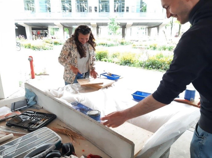 The work took much longer than expected because of the size, all the woodwork and electronics involved. But because of the diversity in talents involved it was a great journey in which we learned a lot and got to launch a great new experience for students who want to clear their minds for a while!