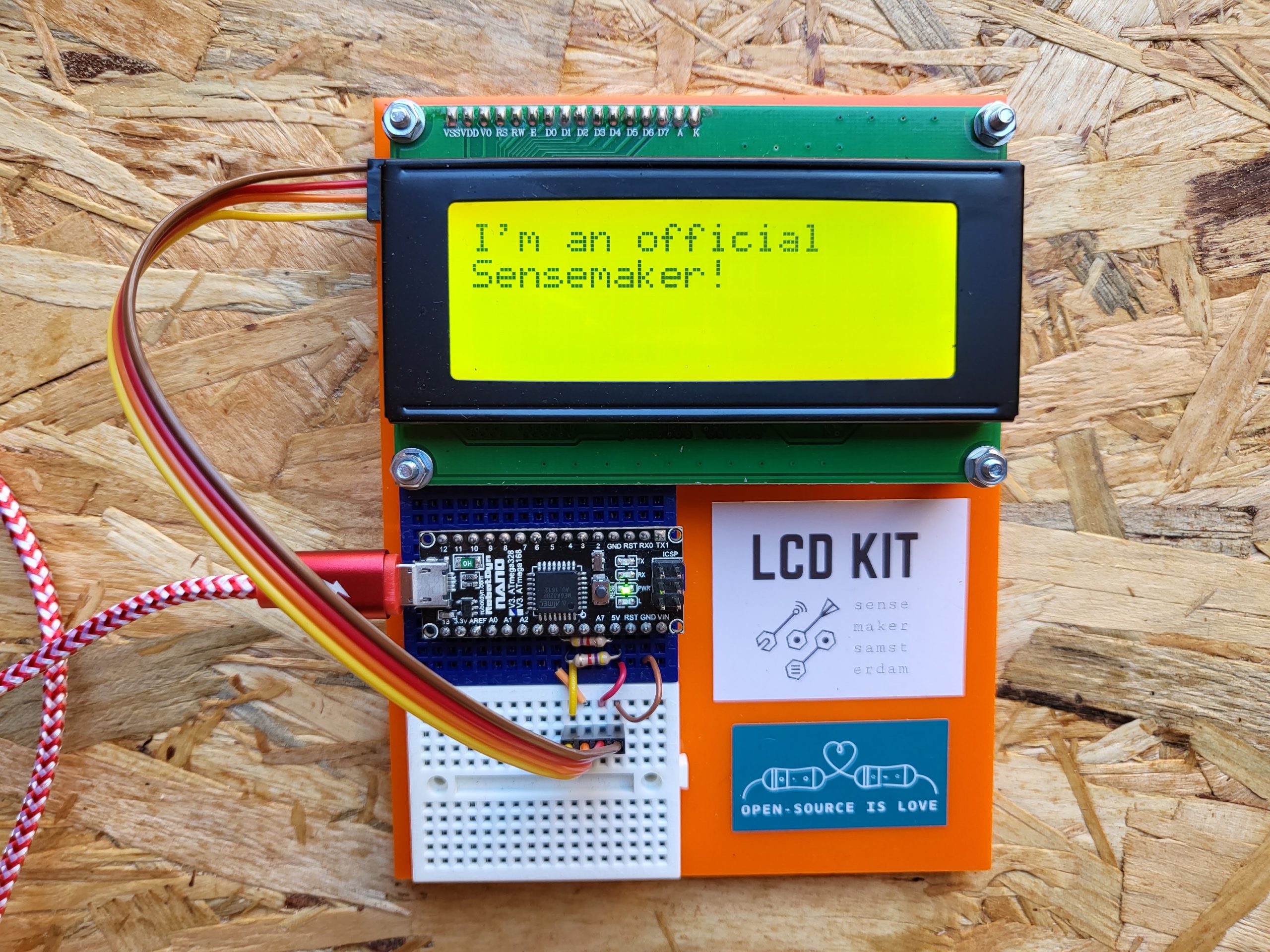 Ready? Connect the USB cable to the computer and watch whether a message appears on the LCD screen. If not, check your circuit.