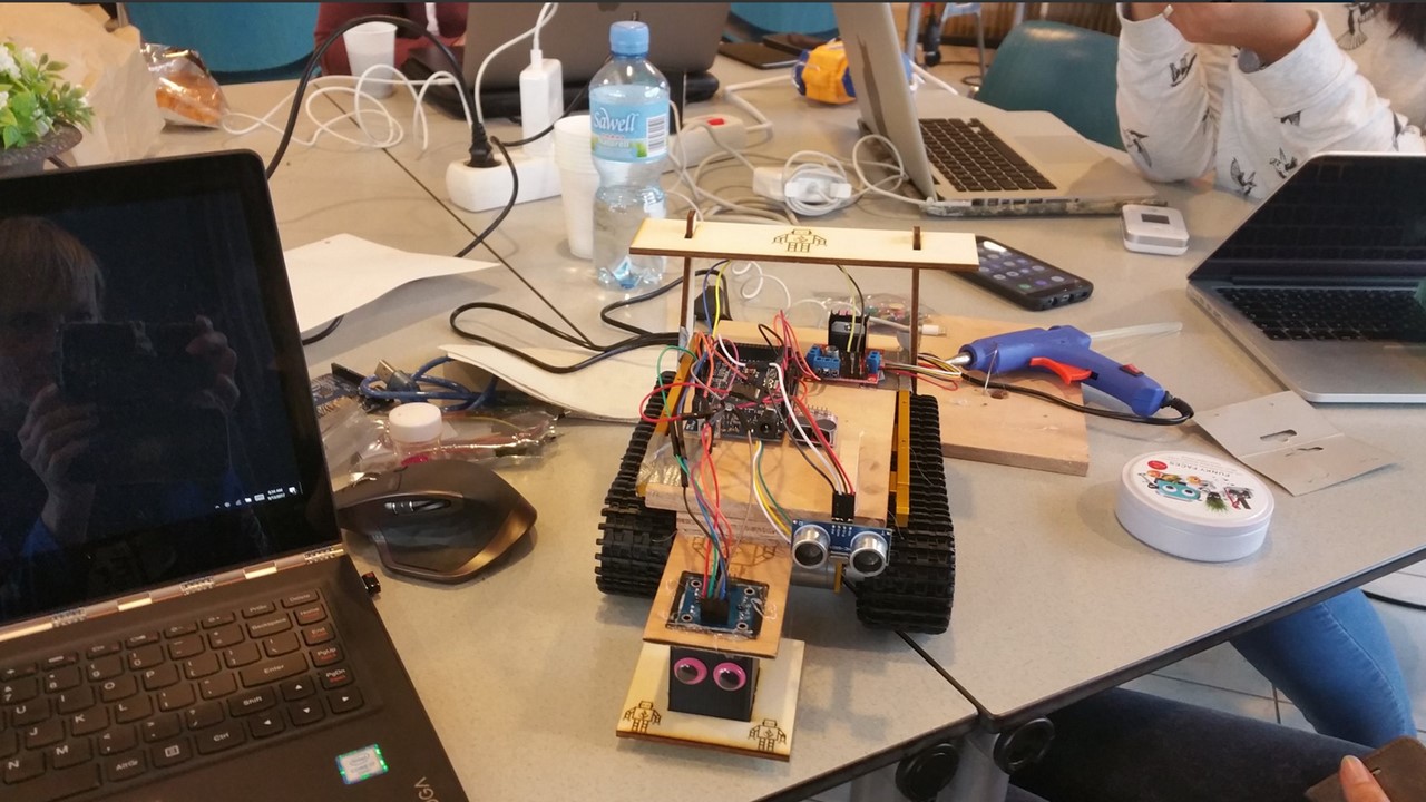 Robots are also popular in our community. From a remote controlled vehicle, to a self driving car and even a ‘smart’ tank to investigate and map the surroundings after a major disaster: the possibilities are endless.