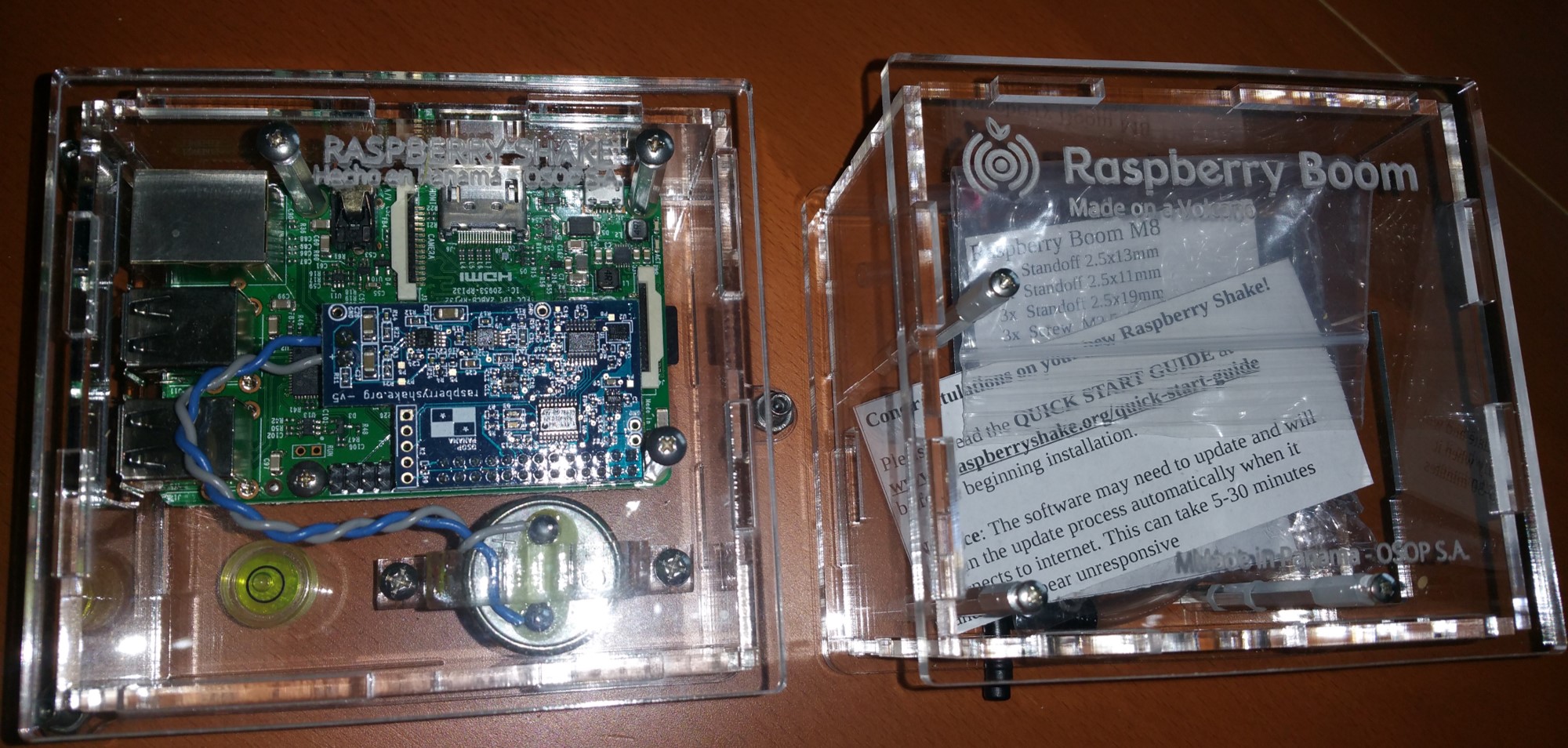 If you are interested in Seismography or very low ‘inaudible’ sounds, we have some interesting kit to play with. Did you know that you can ‘hear’ thunderstorms coming (like some animals do) or that giraffes actually talk to each other but people thought they did not, since their sounds are so low that the human ear can not hear them. From Kickstarter we got 2 kits: a Raspberry Shake and a Raspberry Boom. As you might have guessed, both kits are based on a Raspberry Pi, so it is useful as you know how to work with those a little.